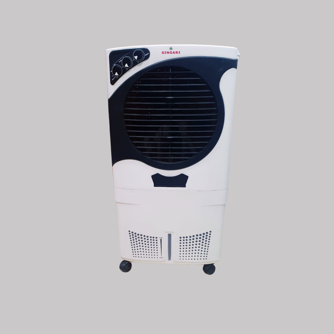 75 Ltr Water tank capacity Ideal for bedrooms & offices 4-way air deflecon High efficiency cooling pads Ice chamber for quick water refill